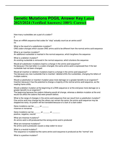 Read Online GENETIC MUTATION POGIL ANSWERS Kindle Editon ManyBooks